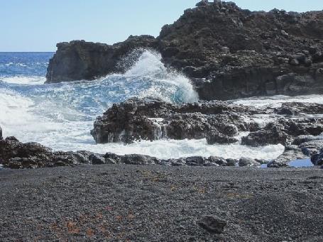The far south of La Palma and a lava tube emerges on to the beach