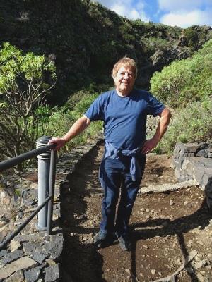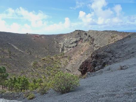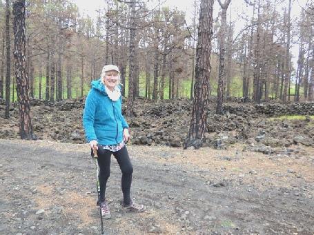 A new Visitors Centre had been built, so we paid our €5 each and looked round at the various maps and information. Adrian couldn't resist buying another map of La Palma. After watching a video in English about the area, in a posh cinema, we walked out along the pathway to see the volcano which had erupted in 1677. The rough path was along a ridge sandwiched between the volcano and the steep slope down towards the sea – not the best for me, especially as it was windy. There were a lot of visitors, some folk were wearing shorts and T shirts – that wouldn't have suited me either!