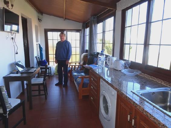 Apart from 4 large pots of bright geraniums, it all looked a bit uncared for. We ascended a rough cobbled path to the house, which was all locked up. Not knowing what to do, Adrian phoned the number he had, and talked to a gentleman who spoke some English, trying to explain that we were at the house. We ate the rest of our lunchtime rolls before driving up to the end of the road, then Adrian phoned again, and we waited. After a while, we walked back down to the car, and I queried whether we were at the right property. There were no names on either the roads or the houses. We perused the photo we had of the house - it looked similar, but we decided it was not the one. We drove back to another vertiginous road, and sure enough, we came to 'our' property, Casa el Mirador, where we met the nice owner. He showed us over the lovely house - very smart and well cared for. Just as he was leaving, he looked at our booking slip. Oh No! This smart house wasn't ours - that was the far simpler accommodation below!