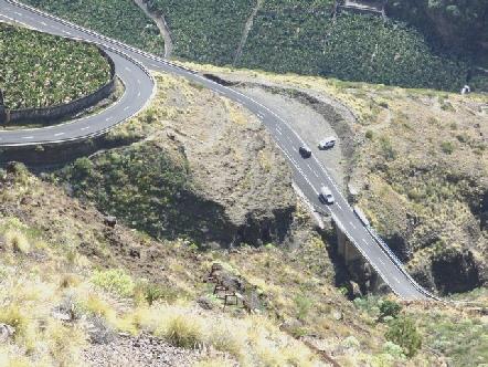 It is all very steep and winding and extremely high – the main road LP1 runs round the island at a height never less than 1000m (3000ft) There are very few beaches Not much tourist development Bananas are grown in every possible space Dozens of well-marked footpaths, but all steep Roads are well surfaced No motorways Fresh fish almost impossible to find. The island is very green – guess why?