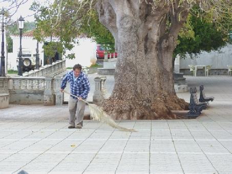 We returned to El Paso, and with difficulty located the tapas restaurant beside a little church on the square, mentioned in Lonely Planet, but it was all shut up, even though the sign said open on Sundays! I found another restaurant mentioned in nearby Los Llanos, so we made our way there, taking a wrong road because of road closures. This restaurant was closed up too! And so was the next one mentioned! We decided to walk down to the Plaza Espana, as there were other eating places there. All were outside cafes, and it had become quite chilly. We passed the large Remedios church with its doors open. I wanted to peep inside, but Adrian said 'on the way back', as he desperately needed the loo! Having used a toilet in one of the cafes, we walked back past the church, whose doors were now firmly shut! We had success in the end, at a little outside cafe on the square, after Adrian had gone back to the car for my fleece! I ate fish soup, and Adrian had 'fish of the day', and we both had a local beer. It was quite atmospheric, with the giant Indian Laurel trees in the square (for shade against the heat!)