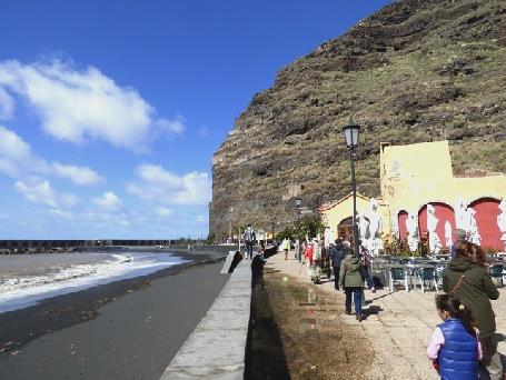 When we reached Puerto Naos, the west coast resort, we had to descend hundreds of feet amongst the banana plantations. It was far too windy for me to enjoy, and the difficulty of one-way streets meant that we didn't stop long. Los Cancajos, the 'resort' on the eastern coast had seemed much more attractive.