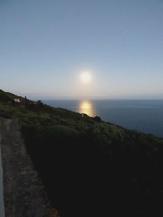 The full moon shone down on the sea while we had tea.